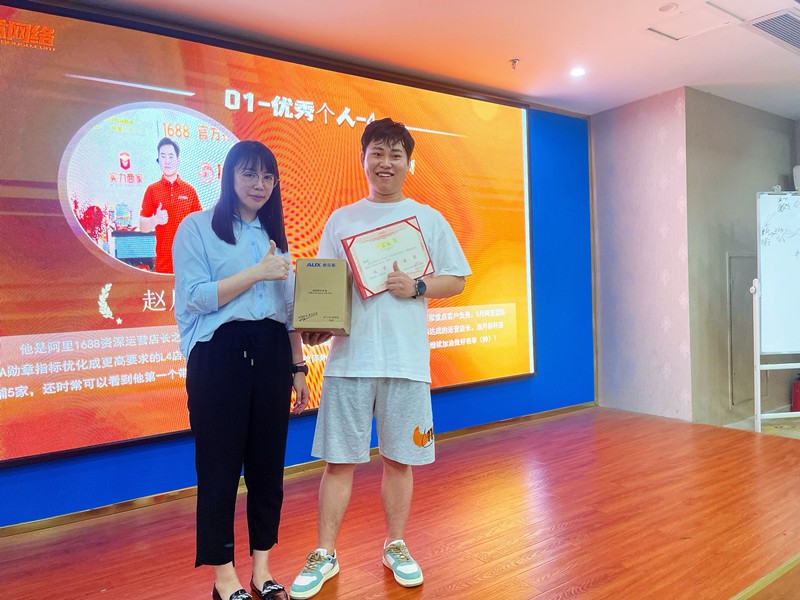 獎(jiǎng)項(xiàng)4:5月阿里運(yùn)營(yíng)績(jī)效達(dá)人獎(jiǎng):邱嘉樂。他是阿里1688運(yùn)營(yíng)店長(zhǎng)之一,5月綜合工作績(jī)效第一,其中店鋪詢盤目標(biāo)達(dá)成124%,當(dāng)月有效詢盤標(biāo)桿店鋪4家,分別是4月剛接的誠(chéng)信通店鋪獲得有效詢盤56個(gè),誠(chéng)信通化工店鋪有效詢盤181個(gè),實(shí)力商家快消品有效詢盤130個(gè),實(shí)力商家貨架店鋪詢盤113個(gè)。本月還新接了一個(gè)超級(jí)工廠店鋪,一步一個(gè)腳印在成長(zhǎng),希望你繼續(xù)穩(wěn)穩(wěn)的向前沖!