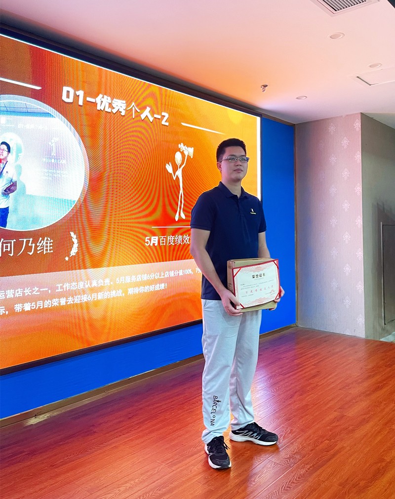 獎(jiǎng)項(xiàng)7:5月銷售冠軍獎(jiǎng):龔永瑞。他是銷售部新簽團(tuán)隊(duì)的小伙伴之一,5月開單數(shù)量7單。不管是早上6點(diǎn)多起來準(zhǔn)時(shí)7點(diǎn)挑客戶,還是晚上7點(diǎn)下班之后都是時(shí)??梢钥吹剿园l(fā)加班的身影。目標(biāo)感較強(qiáng),是5月的團(tuán)隊(duì)開單王!一分耕耘,一分收獲,期待你6月的持續(xù)優(yōu)秀。